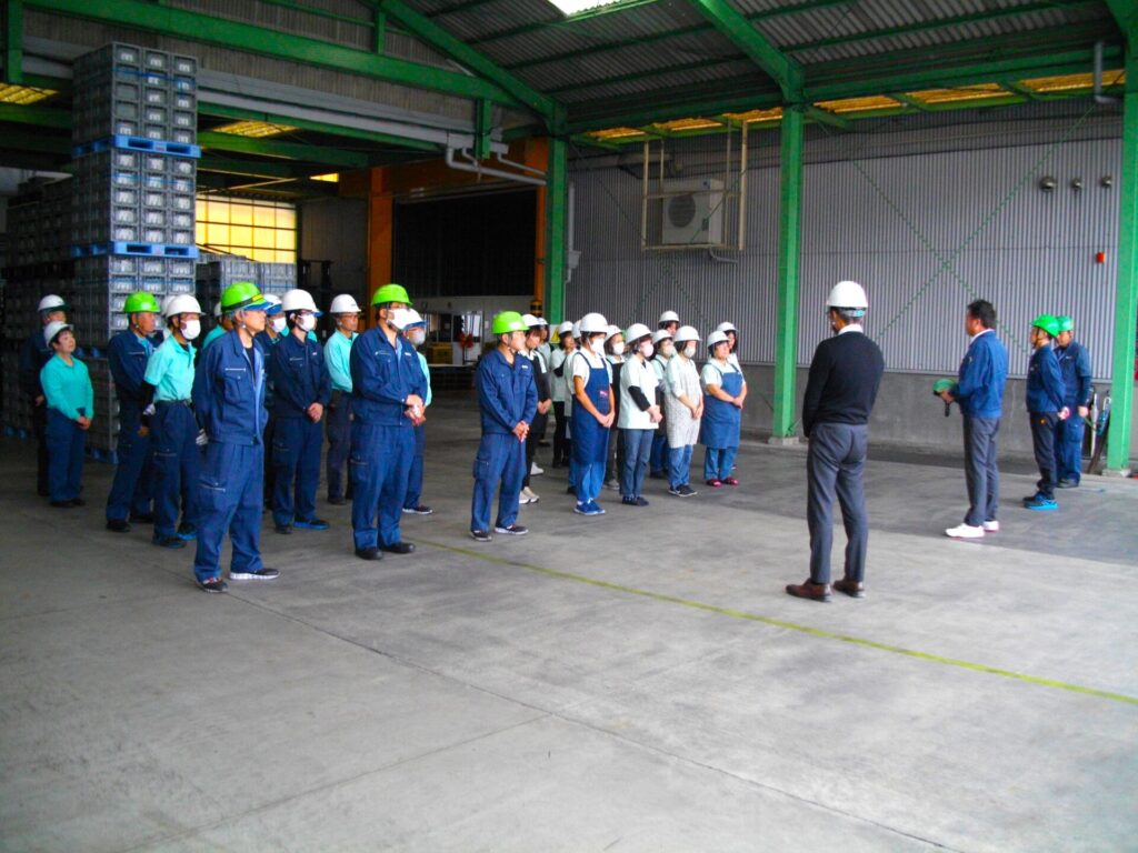 業務統括部長、常務、社長からそれぞれ日常の注意点や営業的な報告などを行い、5Sの意識が職場の安全にも繋がることを共有しました。