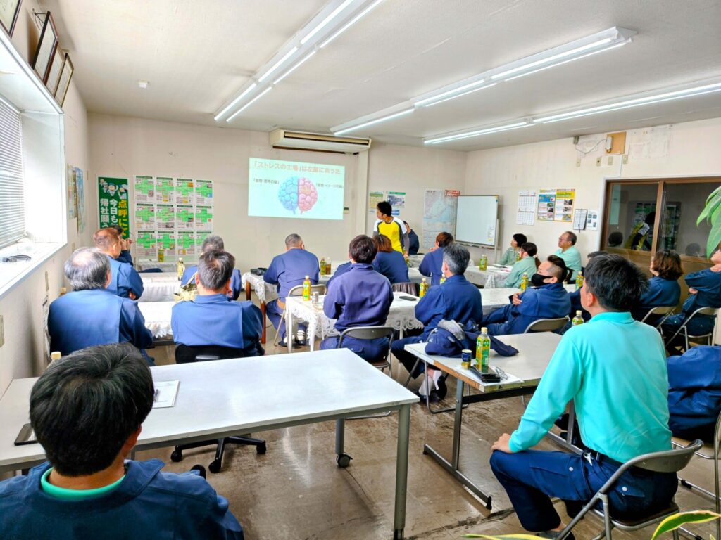 安全会議に続いての腰痛予防セミナーでは、講師の寺田先生による腰痛に関する学習を行い、今回は〃脳のメカニズムと痛み〃に関して学びました。痛みを感じる脳のメカニズムを学ぶ事は、日頃の生活習慣にも大きく関係し、考え方や余暇の過ごし方などにも様々なヒントを頂きました。