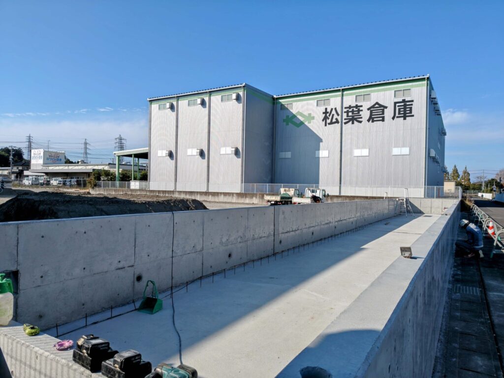 造成工事も2か月目の後半に入り、調整池の桝の工事、擁壁の工事などが進んでいます。広さのイメージが少しづつ実感として見えてきています。