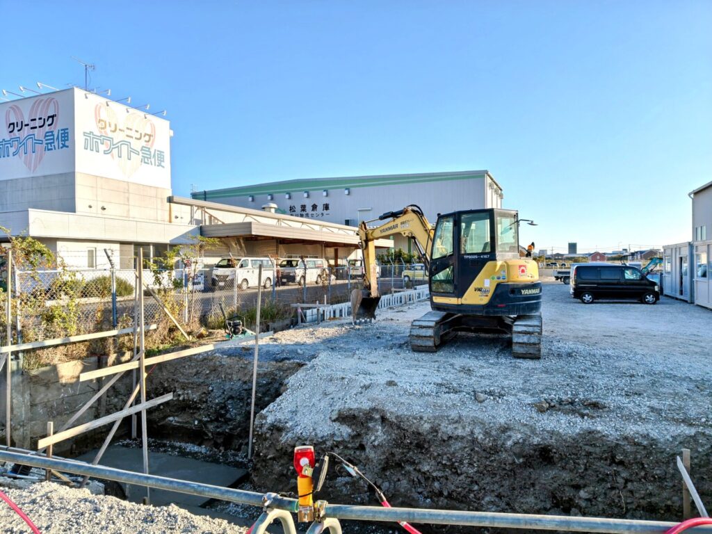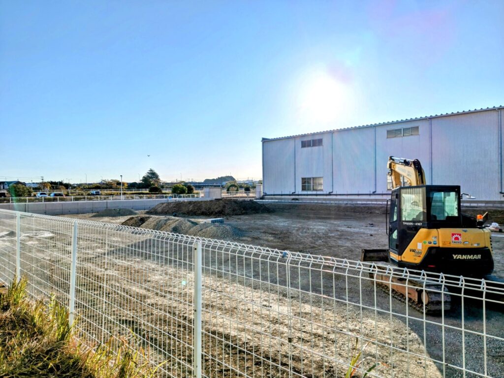 調整池の桝が完成し、敷地外周の壁の工事が進んでいます。同時に、道路からの進入口の工事が始まりました。年明け二月ころからの本体工事に向け、造成工事が進んでいます。
