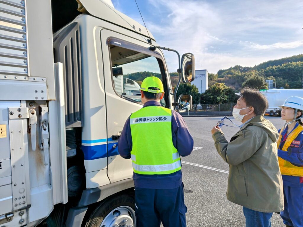 12/10(水)、国土交通省中部運輸局、道路管理会社、藤枝市、民間土木会社、そして私たちトラック協会中部支による、合同啓発活動に参加しました。