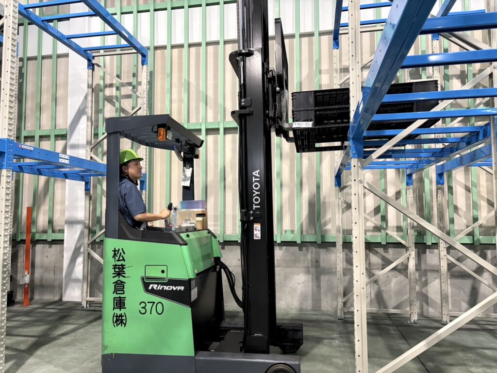 フォークリフトを操縦し倉庫内での荷物の入出庫業務、お客様との電話での応答、PCを使い在庫管理システムへの入力作業や、商品の検品・梱包作業もあります。