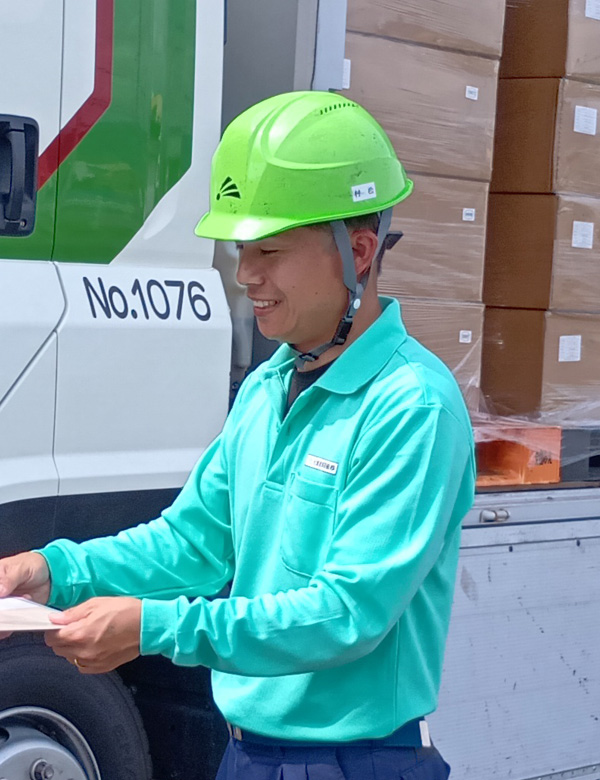 大型トラックで配送業務を担当しています。中距離配送が主となり、関西・関東方面に行くことが多いです。県内では、掛川から清水に行くこともあります。単に荷物を運ぶだけでなく、積み込み・荷下ろしの際の周囲の安全確認、商品に傷一つつけないよう注意を払っています。配送前は事前にルート確認、天候確認、車両チェックも必須です。安全運転を心がけるとともに健康管理、特に食事・睡眠は徹底しています。
